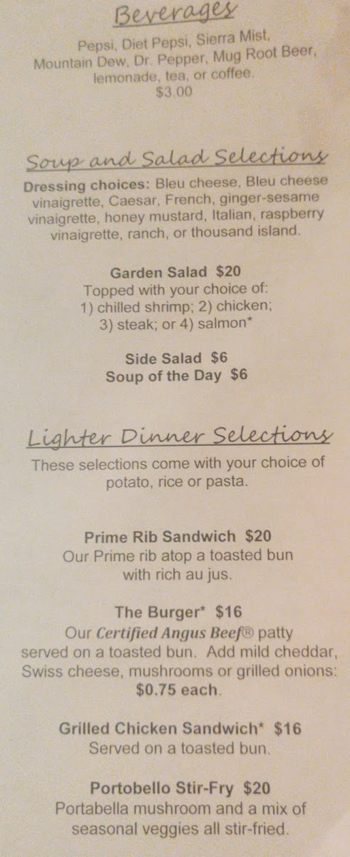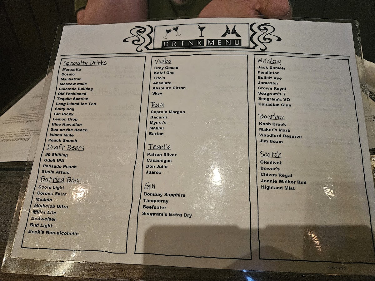 Start your meal with light options like their garden or side salads and rotating soup of the day to awaken your palate. The cocktail list is robust, featuring traditional favorites such as the Old Fashioned, Manhattan, and Colorado Bulldog, alongside a curated bourbon selection including Knob Creek and Maker’s Mark, enhancing the overall dining experience.