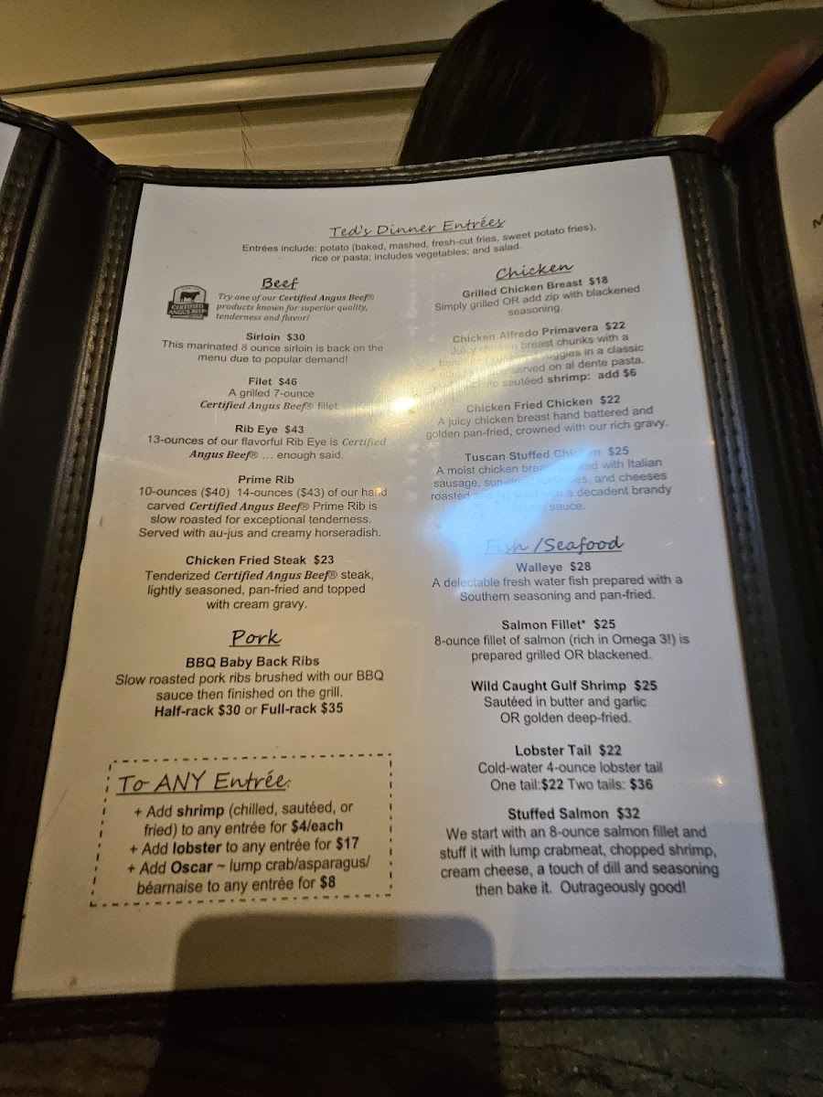 Ted Nelson's Steakhouse in Montrose, Colorado, offers an authentic steakhouse experience rooted in classic flavors and warm hospitality. The menu highlights perfectly cooked steaks like filet, ribeye, and sirloin—each praised for tenderness and expert seasoning. Sides such as buttered garlic noodles, loaded mashed potatoes, and roasted vegetables complement the mains without overpowering them, keeping the focus on quality and simplicity.